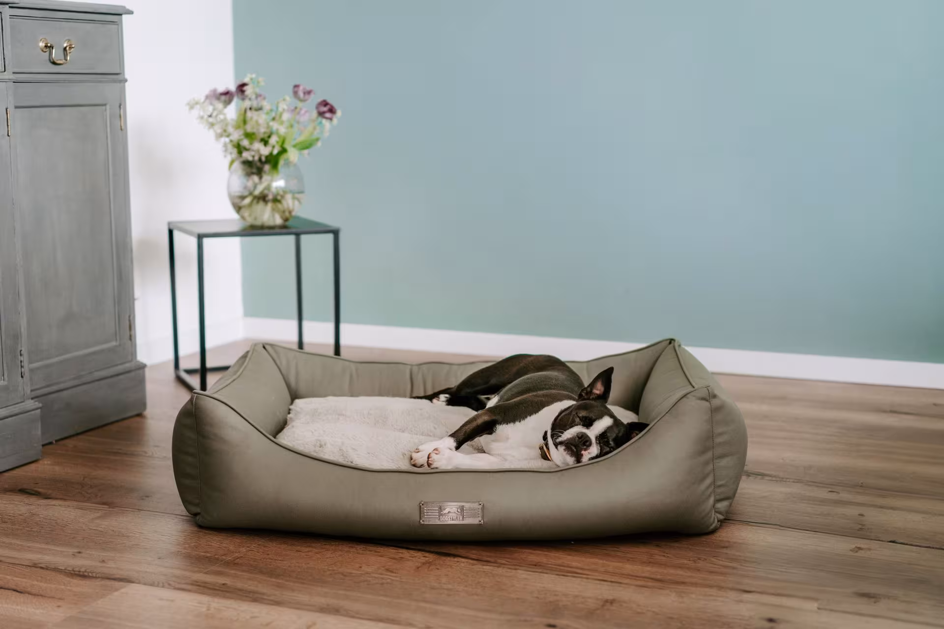 Das Kunstleder lässt sich leicht abwischen und bleibt dadurch besonders pflegeleicht. Gleichzeitig besitzt das Hundebett einen praktischen Tragegriff, sodass du es einfach bewegen oder an einen anderen Platz legen kannst.