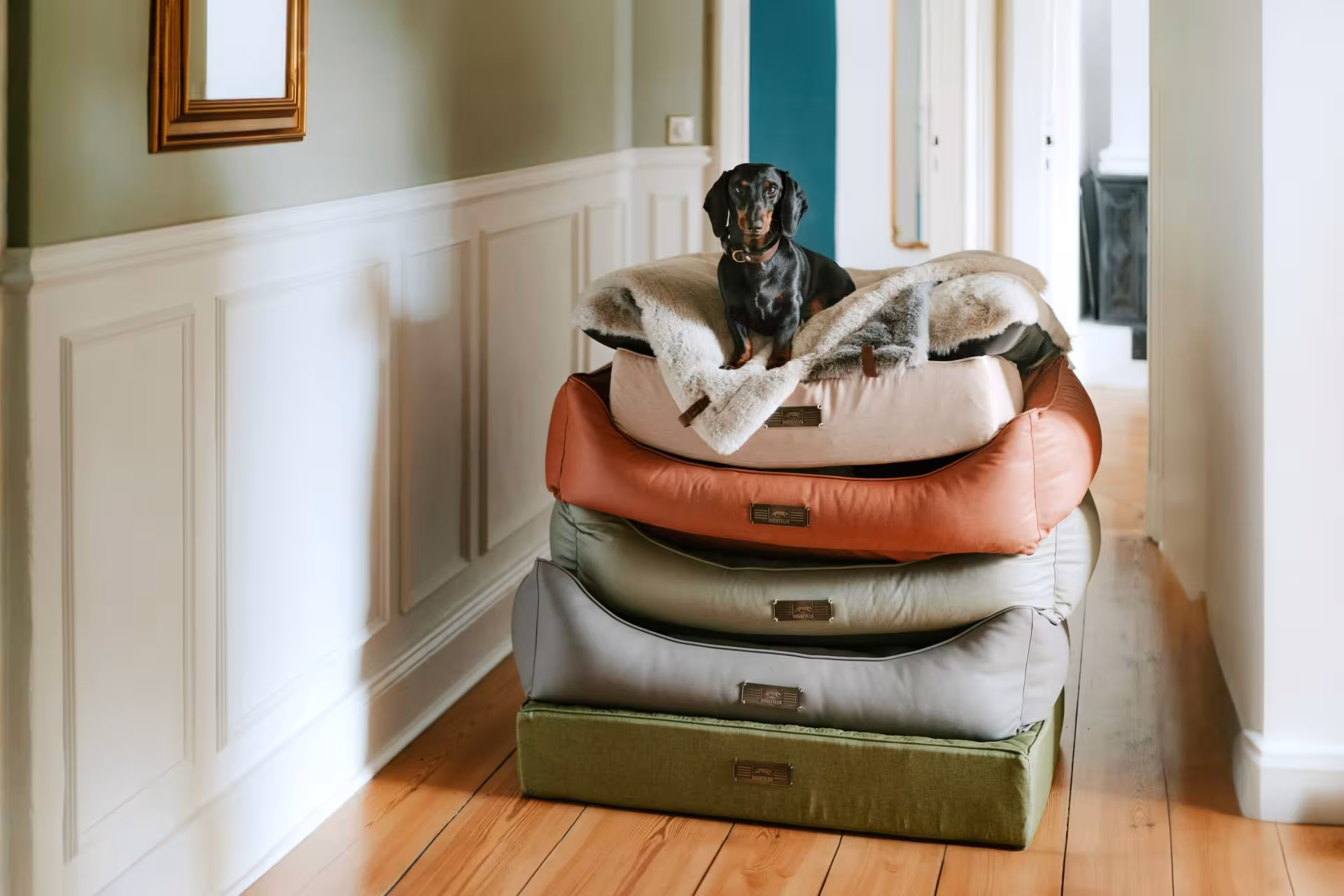 Im Inneren des Hundebetts befinden sich 100 % Viskoseflocken. Diese passen sich der Körperform deines Hundes an und verteilen den Druck gleichmäßig. Dadurch werden Gelenke und Muskulatur entlastet.
