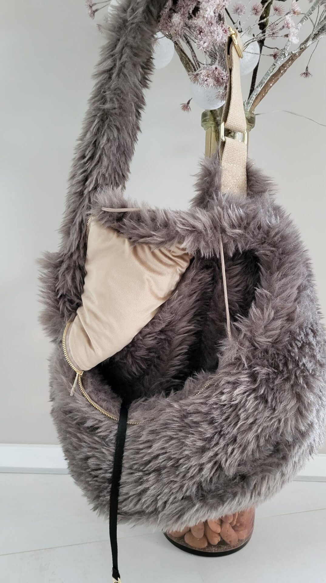 Die Slingbag ist für kleinere Hunde bis ca. 5 – 6 kg geeignet und natürlich für Welpen. Diese werden den kuscheligen Rückzugsort lieben, wenn sie unterwegs sind. Dabei hat man beide Hände frei und das Gewicht verteilt sich über die Schultern. Ein kleiner Gurt im Inneren der hundewerk Hundetasche dient zur Sicherung. Auf der Rückseite sind noch 2 kleine Fächer für ihre privaten Sachen wie Handy, Geldbörse usw,
