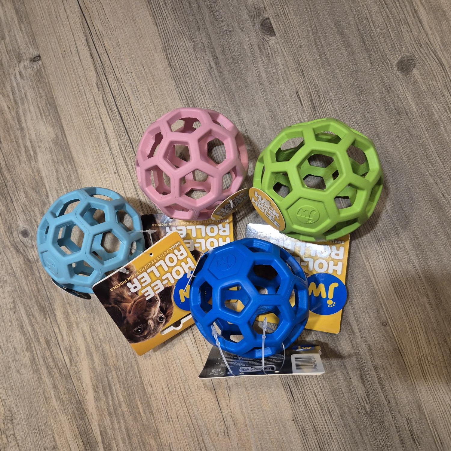 Der JW Hol-ee Roller Small ist das ideale Spielzeug für kleine Hunde und Welpen, die gerne kauen, zerren und apportieren. Hergestellt aus robustem, dennoch flexiblem Naturkautschuk, überzeugt dieser clevere Ball mit seinem durchdachten Wabendesign und seiner vielseitigen Einsetzbarkeit – ob als Apportierspielzeug, Kauspielzeug oder als Futterball für geistige Auslastung.